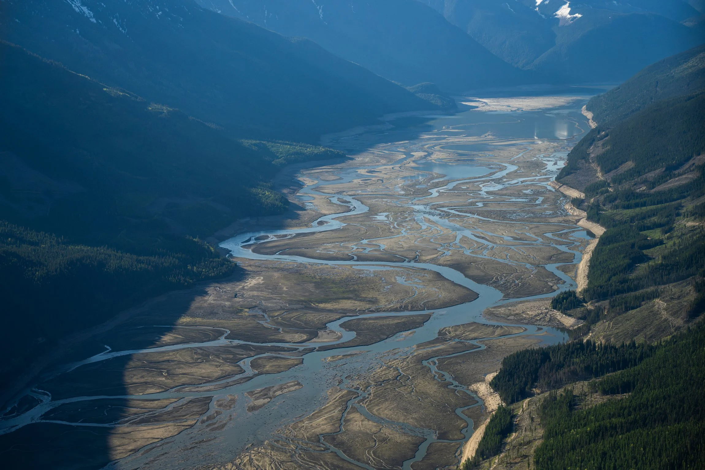 Aerial of Howser Creek entering Duncan Lake, British Columbia. Photo: Ashley Voykin