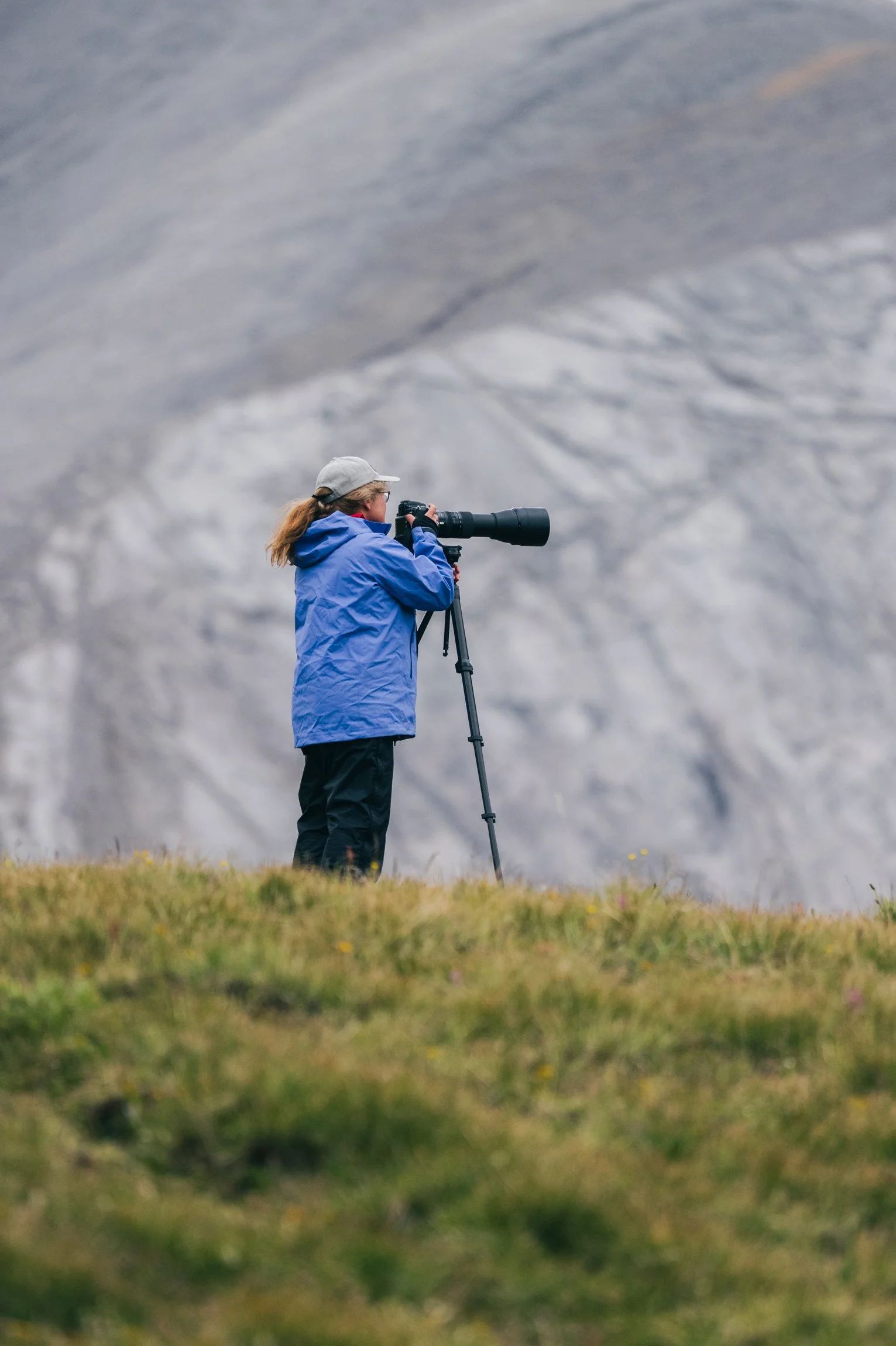 Photographers Stasia Schmidt and Lee Nordbye hiking the wildflower covered ridge. Photo: Ashley Voykin